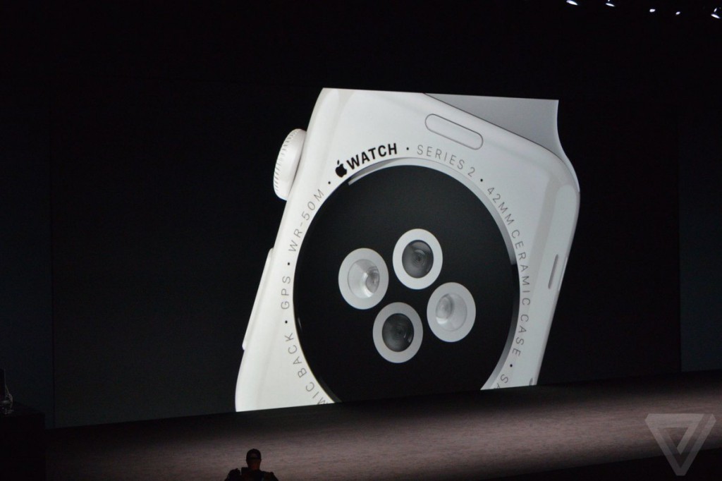 На презентации также были показаны беспроводные наушники и «умные» часы Apple Watch 2.