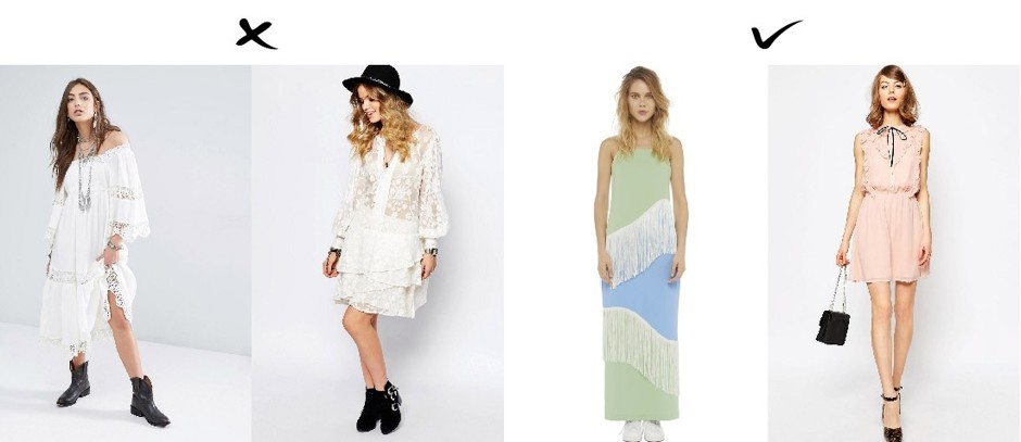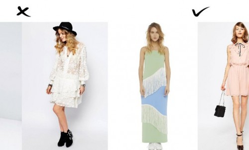 Любая белая одежда на свадьбе — запрет. Просто смиритесь с этим. Бохо и кроше, бэйби-дол, платья с запахом или баской, комбинезон, смокинг или брючный костюм. Если белый цвет в вашем образе основной, то считайте — вы на глазах у всех гостей плюнули невесте, если и не в душу, то на ее платье. Хотите светлые цвета? Пожалуйста! Цветовая палитра не вертится вокруг одного белого: кремовый, лимонный, беж, жемчужный.