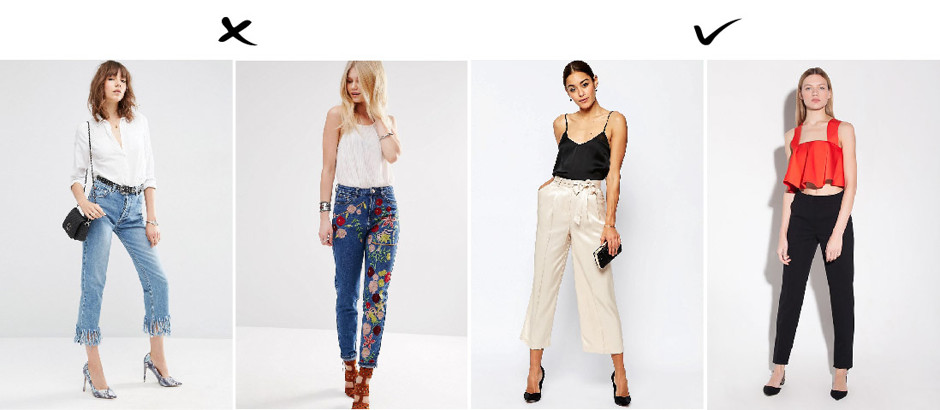 Считается, что джинсы — это такая универсальная вещь, в которой хоть в театр, хоть по дрова, хоть на работу, хоть на праздник. Безусловно. Но только не на свадьбу! Кстати, правило касается и мужчин, так что хотя бы попытайтесь уговорить своего спутника переодеться в брюки.