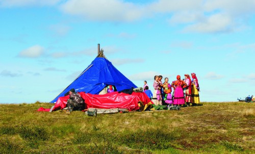 «Стойбище — место для праздника — встретило нас дымком над гостеприимными чумами, лаем собак, хорканьем оленей и гомоном детей, - подхватила разговор Татьяна Терентьева. - Женщины и дети были одеты в удивительные яркие национальные костюмы, которые просто переливались на солнце. Как мы узнали позже, все свои наряды мастерицы делают своими руками. Буквально сразу нас пригласили к богато накрытому столу, на котором естественно присутствовала главным блюдом оленина в разных видах — вареная, тушеная, жареные стейки; рыба, икра. Всё свежее, только что выловленное и собранное. Меня удивило наличие салатов, которые и мы делаем к праздничному столу. И все были в восторге от вкуснейшей выпечки».