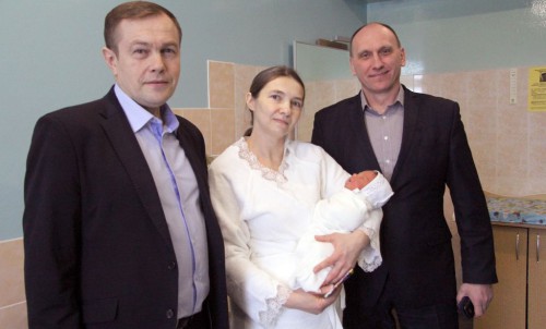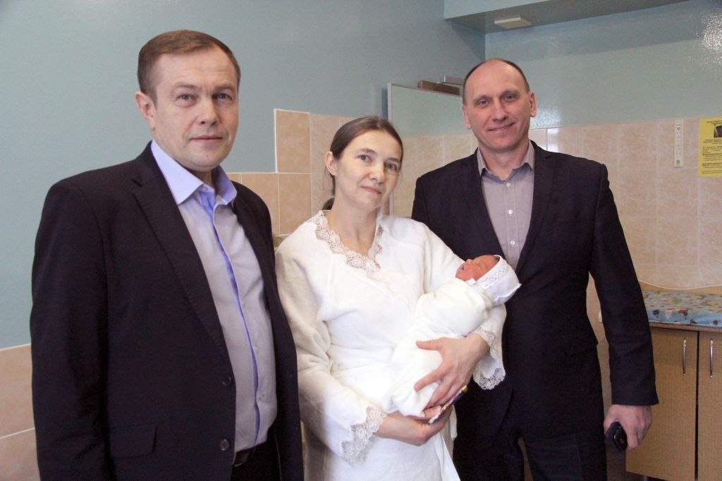 Днем глава города – председатель Совета Юрий Долгих и руководитель администрации Игорь Гурьев поздравили рожениц, вручив сертификаты, которые можно реализовать в одном из крупных детских магазинов города.