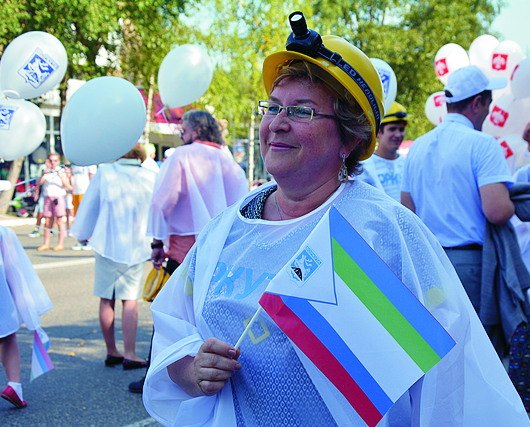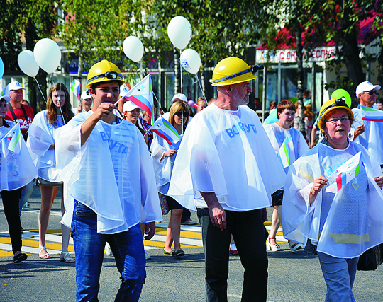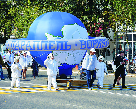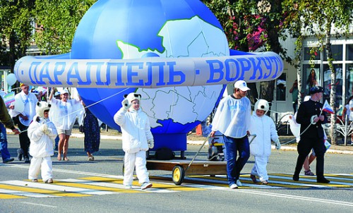 Открывала шествие "Республика в лицах" самая северная точка Коми - Воркута, которую представили сотрудники администрации, депутаты, шахтеры и простые горожане, специально приехавшие из Заполярья в столицу малой родины.