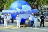 Юные воркутинцы надели на себя костюмы белых медведей. Дети шли рядом с надувным полярным шаром, который катили на тележке.