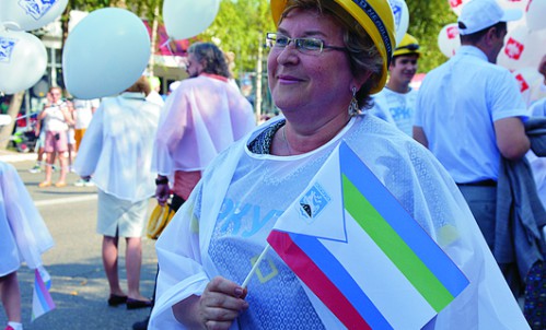 По улице Коммунистической - от "кольца" до Стефановской площади - сыктывкарцы и гости столицы Коми чествовали земляков, приехавших со всей республики. Шествие было приурочено к Дню государственного флага России.