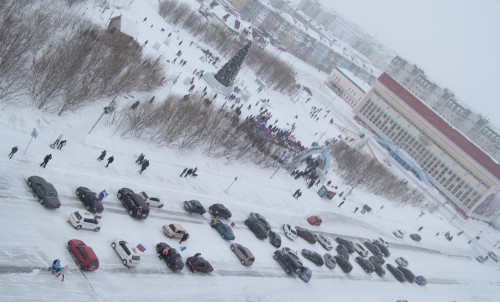 В ходе митинга воркутинские автомобилисты выстроили свои машины в определенном порядке в слова «Нет войне».