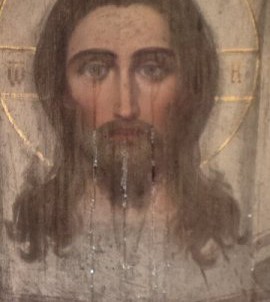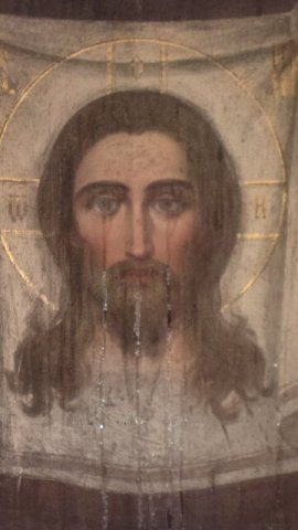 "Из глаз и подбородка текут большие капли масла и струятся прямо вниз по иконе и стене, на которой эта икона и висит, - пишет на своей странице "Вконтакте" епископ Сыктывкарский и Воркутинский Питирим со слов священнослужителя храма. - В 20.00 подложили полотенце под икону. В 23.30 уже полотенце было масляное. Поставили поднос и будем помазывать миром народ. Миро благоухает цветочным ароматом".