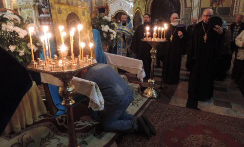 После всеобщей коленопреклоненной молитвы перед святым образом, в которой Владыка просил покровительства и благоденствия всем жителям Коми во главе с ее руководством, началось елеопомазание. После архиерея первым к иконе приложился С.Гапликов, после чего принял от Владыки помазание. Вслед за ним к образу потянулись прихожане, соблюдая каноническую последовательность: сначала мужчины, после - женщины. Совершая обряд, архиепископ поздравлял православных с великим праздником.