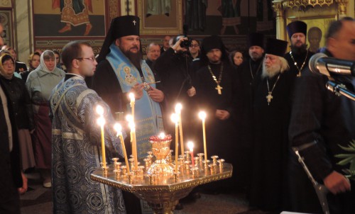 Служба продолжилась исполнением всем приходом во главе со священниками молитвы "Царю Небесный". После чтения часов настал один из самых торжественных моментов службы - чтение Евангелия. Архиерей в благоговейной тишине прочел отрывок из Евангелия от Луки. Евангельский ночной отрывок был посвящен эпизоду из жизни Девы Марии, когда она вместе с матерью будущего крестителя Иоанна Елизаветой пришла в храм к старцу Захарии. Младенец Иисус, услышав слово Божье, взыграл во чреве ее, и Захарий воскликнул: "Благословенна ты в женах, и благословен Плод чрева Твоего!" - слова, ставшие впоследствии словами одной из главных православных молитв.