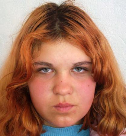 Пермякова Александра Сергеевна, 15.02.1999г.р. Приметы: На вид 15-16 лет, плотного телосложения, рост 150 см., лицо овальное, глаза карие раскосые, волосы темно-русые длиной до плеч, челка опущена на лоб, на шее имеется шрам длиной примерно 3-5 см. (фото: девочка в зеленой кофточке)