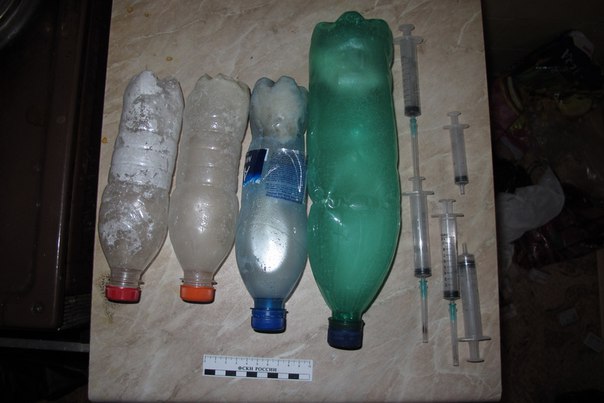 При обыске в помещении найдены и изъяты приспособления для приготовления зелья, использованные шприцы с остатками наркотического средства дезоморфин.